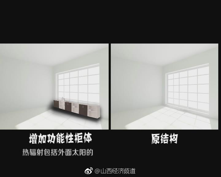方法二:還可以設(shè)置一個(gè)功能性柜體,使窗戶面積相對(duì)減少,這樣熱輻射包括照度也會(huì)相應(yīng)減少,起到一定隔熱效果。